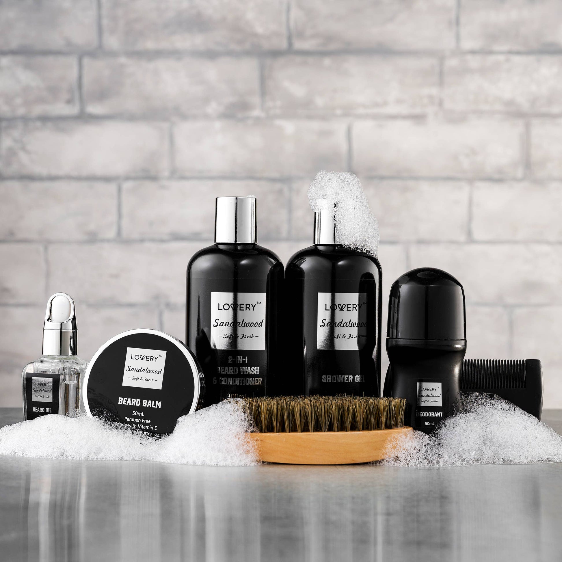Lovery - Luxury Beard Grooming Kit for Men, Sandalwood Bath Gift Set